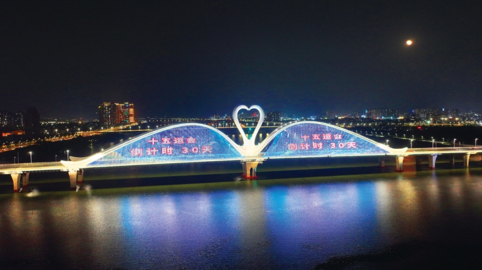 鵝城大橋亮燈喜迎十五運(yùn)會倒計時一個月